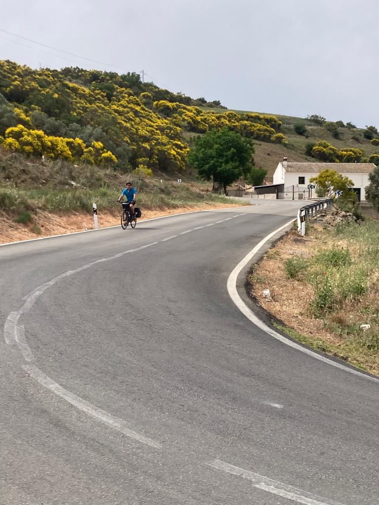 We had a short break and snack and we’re about to enjoy the 10 Km downhill coast towards Antequera. Even a bee thought it would take a ride with me on the front pannier to pick up a little distance the “beesy” way today.