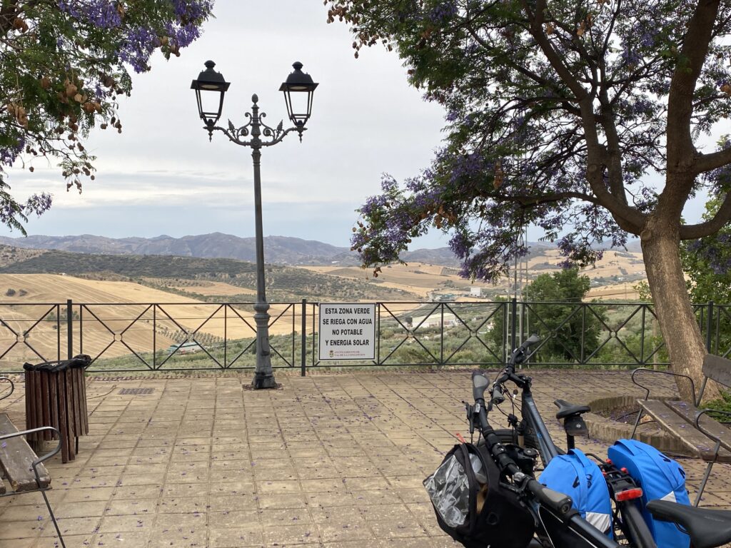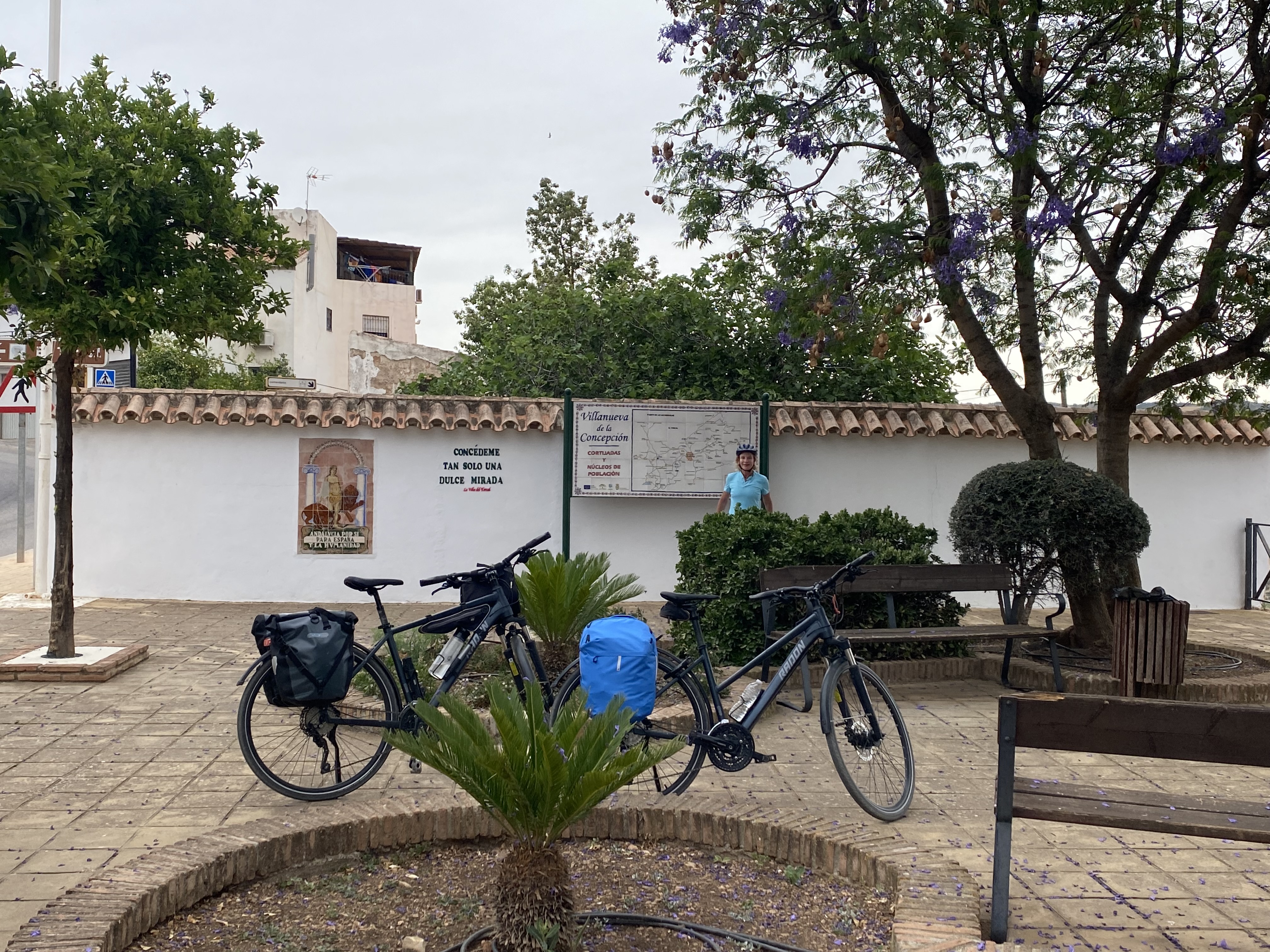 After saying Adios to Lorena and seeing one of the children’s bicycles parked by ours, we began our day with a nice 3 Km downhill glide from our Air BnB at Arroyo Coche only to be met with an uphill into Villanueva de la Concepción. The walking/pushing gear was initiated which took us up to a beautiful lookout back down the valley from whence we came.