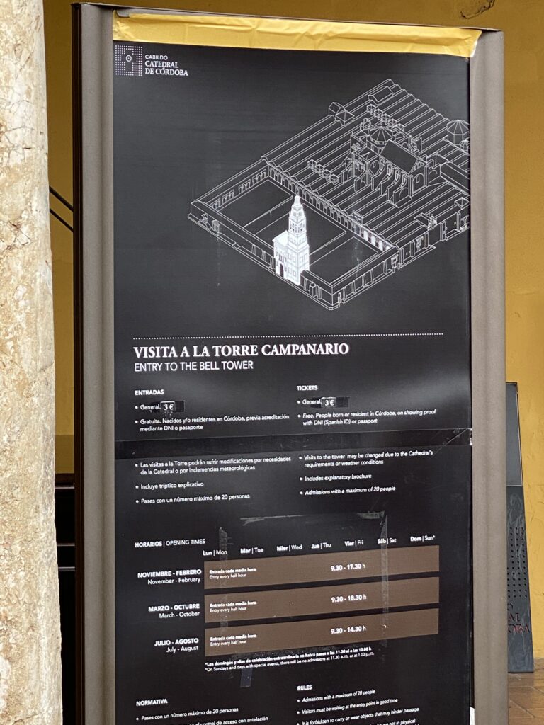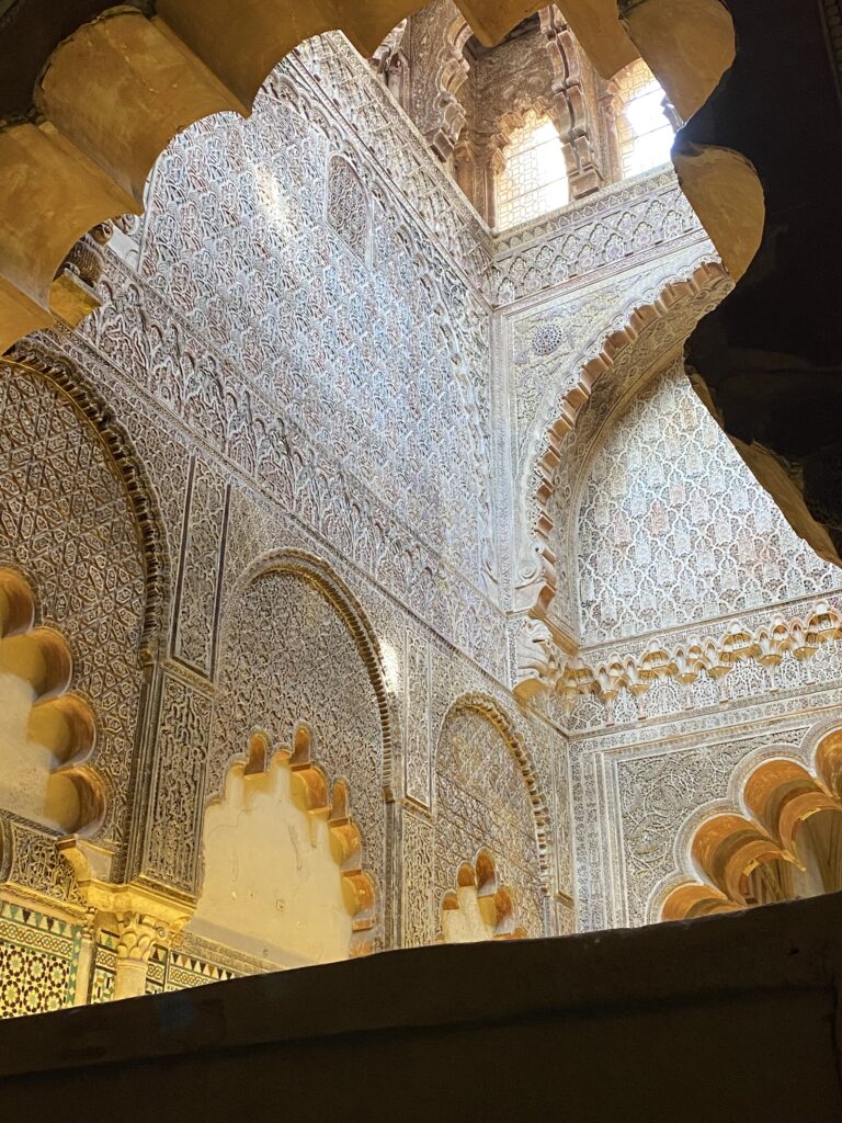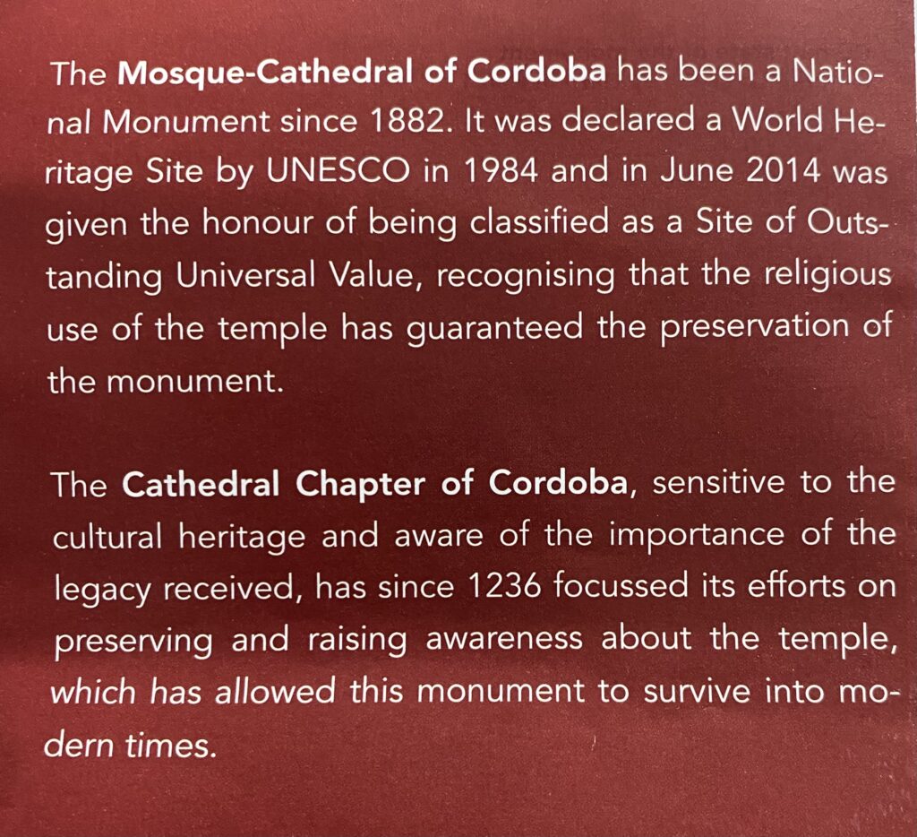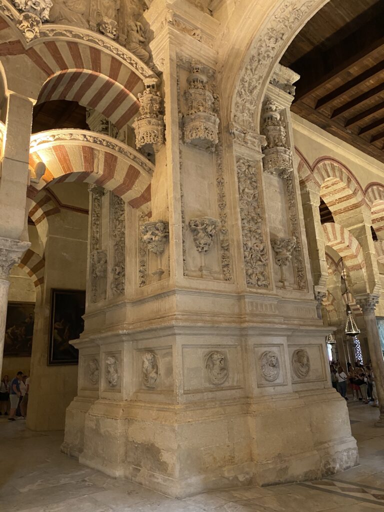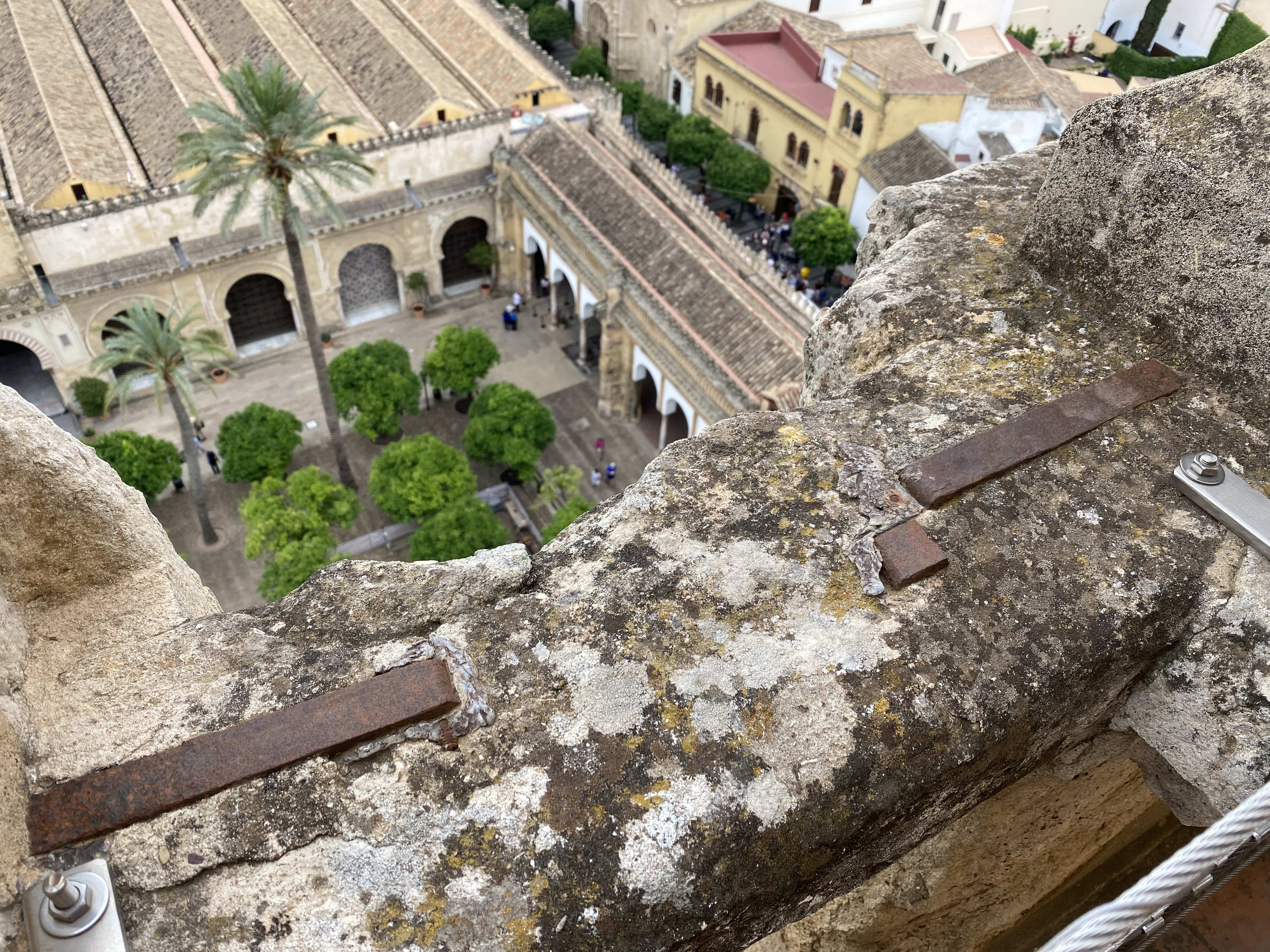 Mid-6th century Visigoth Basicila, Muslim 786 to 1146, Christian 1236 to present. Each warring group using the strength, beauty and architecture of its concurred to build upon their own temples/churches and art. The tower and entire Mesquita-Cathedral of Cordoba is strewn with languages carved into wooden beams, stone, bronze, iron, silver and gold.