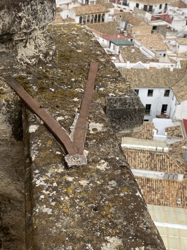 Pedro! Did you remember to bring the molten lead up to set the iron baluster tang into place? No? Ok then bring up a bow tie stone and chisel that into place instead.